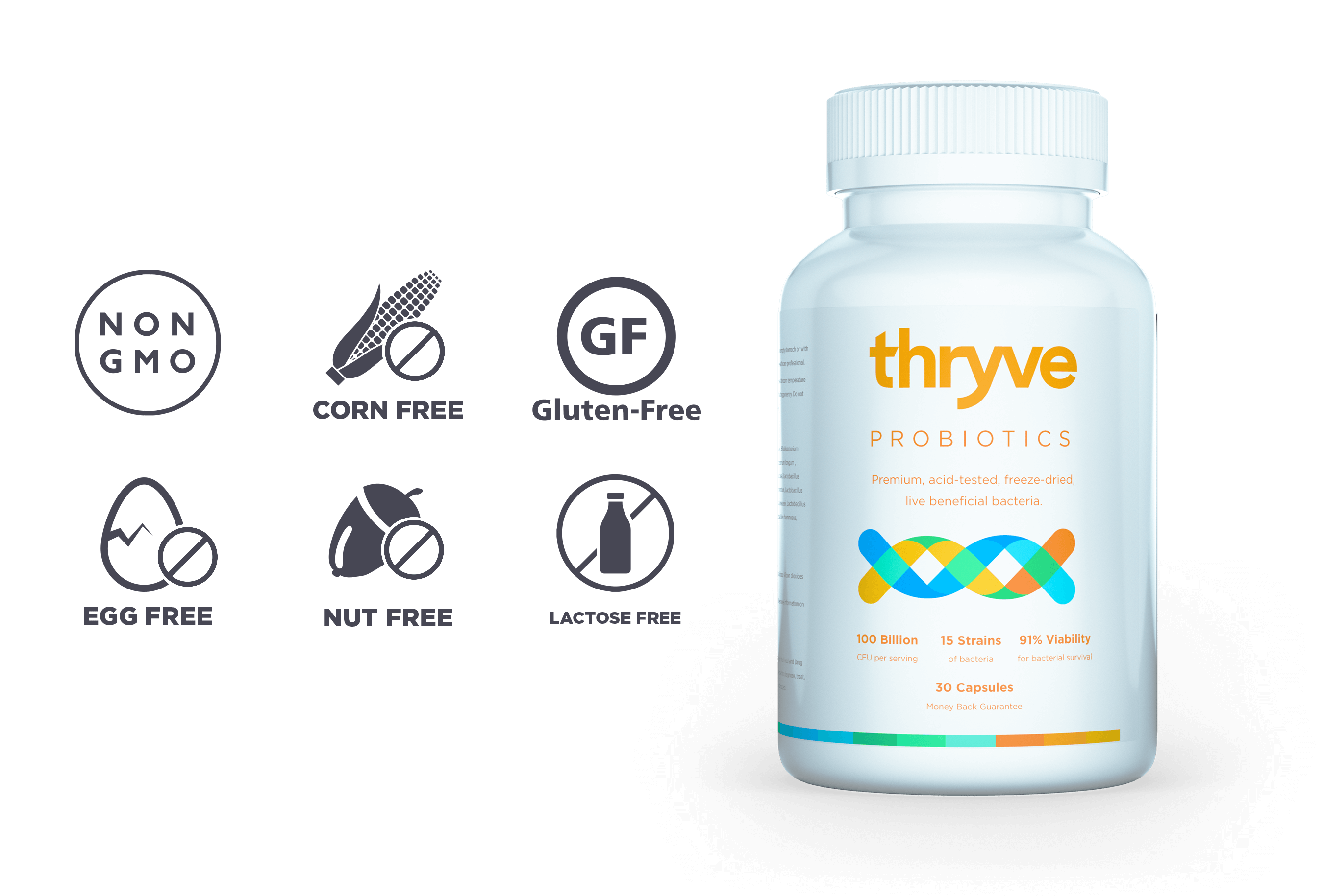Learn More >B. lactis, L. plantarum, L. acidophilus, and L. paracasei like those found in Thryve probiotics have shown to alleviate occasional gastrointestinal symptoms such as bloating, pressure, fullness, stuffed feelings, flatulence, & upset stomach for better digestion. (1) (2) (3)
